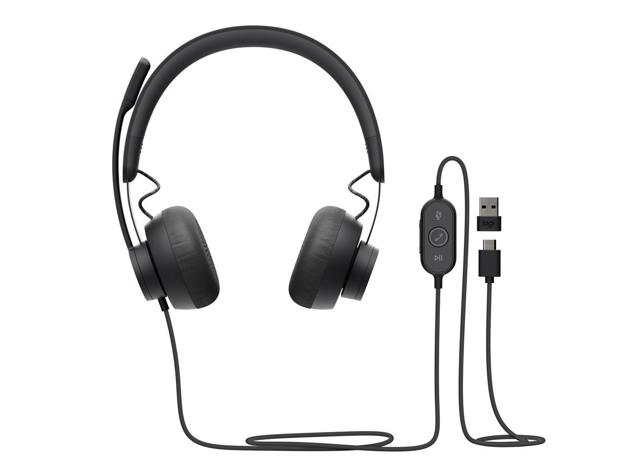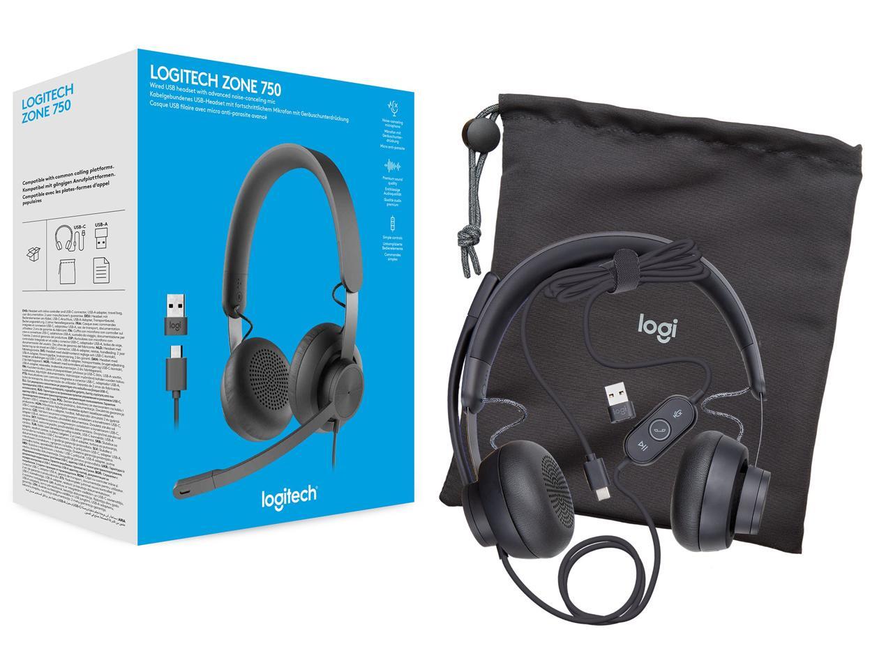 Logitech Zone 750 Wired On-ear Headset with Noise-canceling microphone, USB-C and included USB-A adapter, Plug-and-play connection
