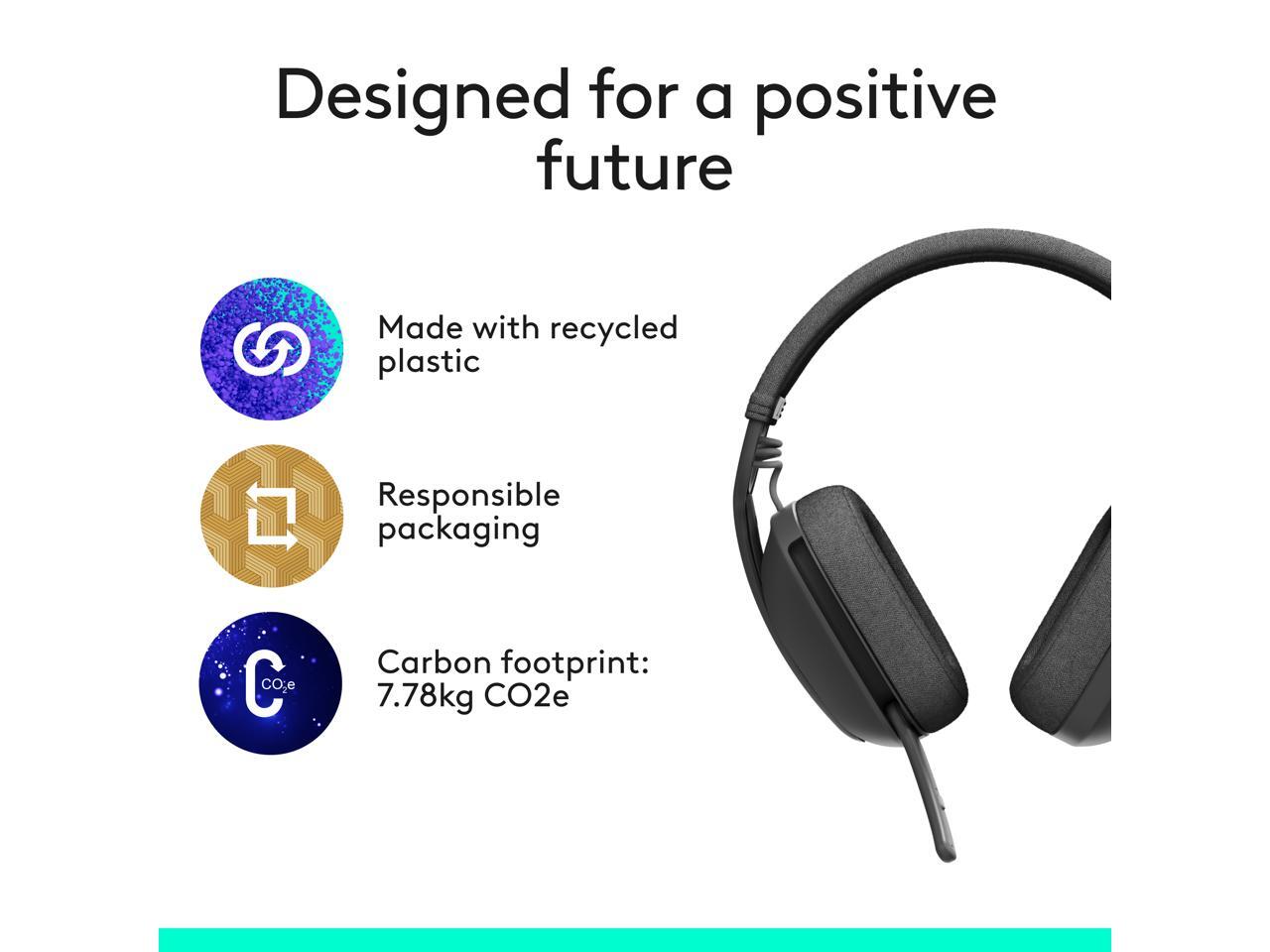 Logitech Zone Vibe 100 Lightweight Wireless Over Ear Headphones with Noise Canceling Microphone, Advanced Multipoint Bluetooth Headset, Works with Teams, Google Meet, Zoom, Mac/PC - Graphite