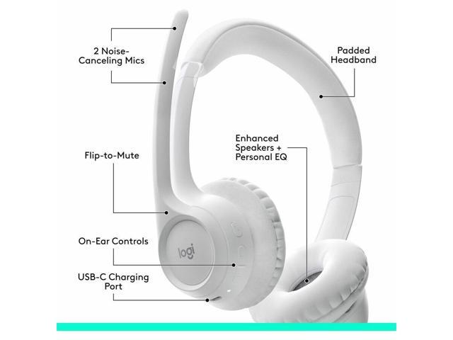 Logitech Zone 300 Wireless Bluetooth Headset With Noise-Canceling Microphone, Compatible with Windows, Mac, Chrome, Linux, iOS, iPadOS, Android (Off-white