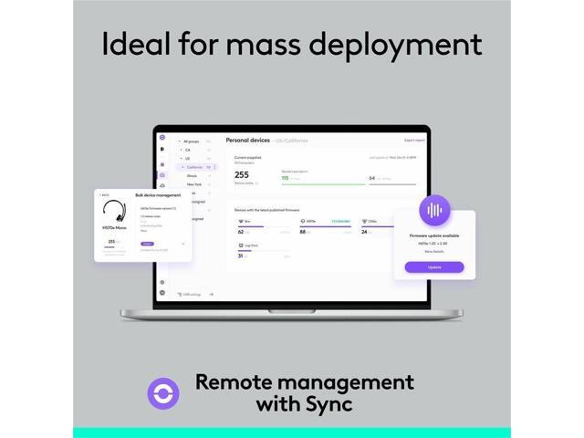 Remote management: Logitech Sync offers IT admins a secure and scalable approach to remotely manage and update the headsets