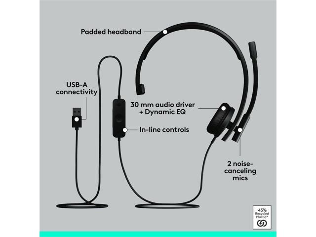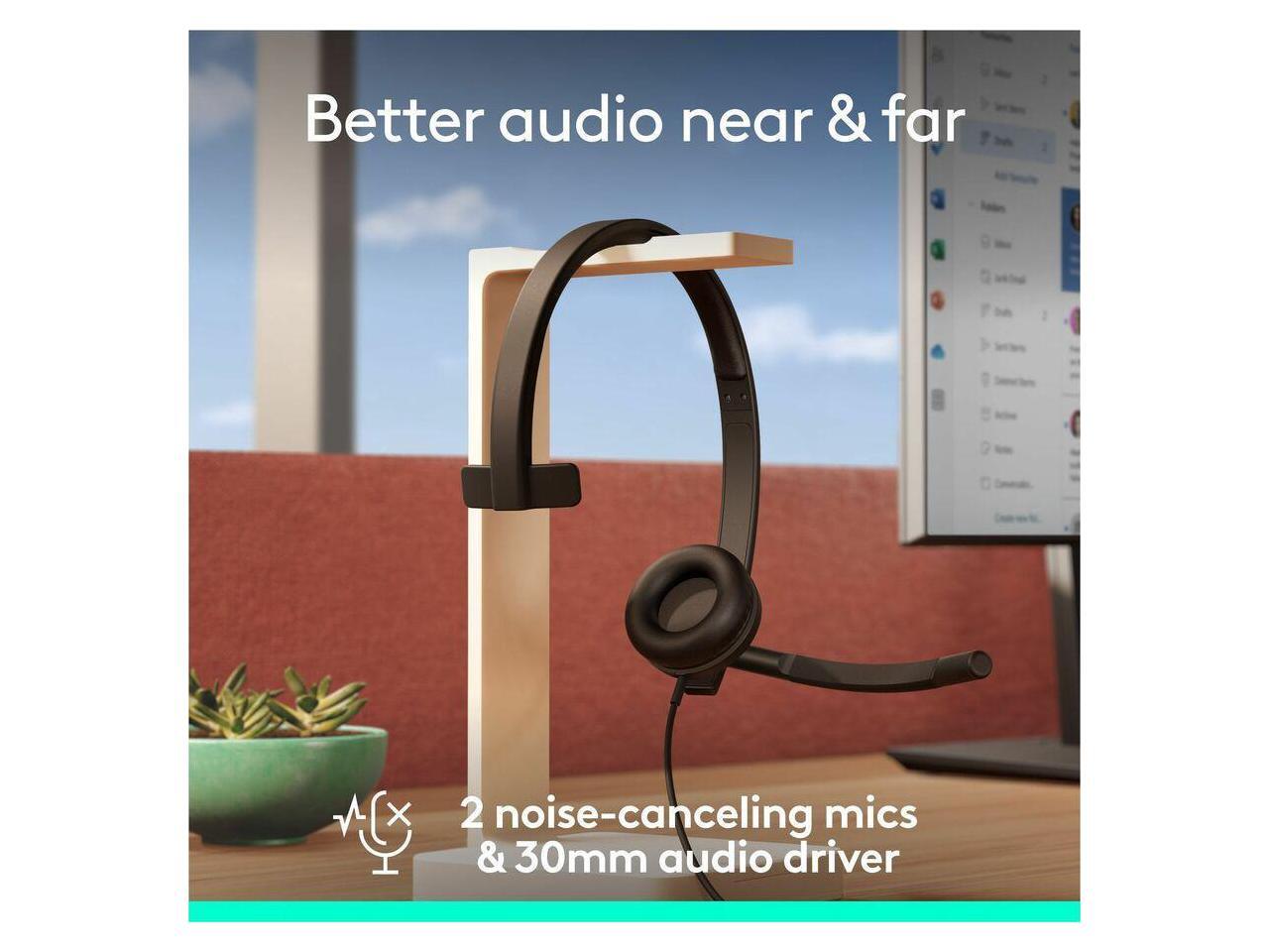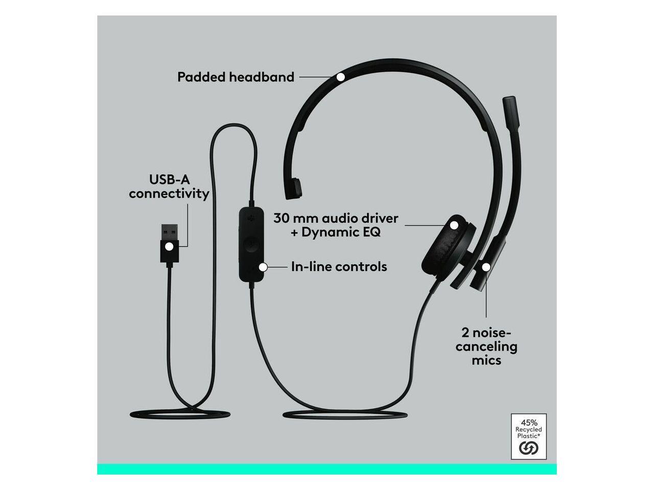 Logitech H570e USB Headset With Microphone for PC and Mac, USB-A Wired Headset With Mono Sound, Noise-Canceling Mics and Inline Controls, Certified for Microsoft Teams, Black