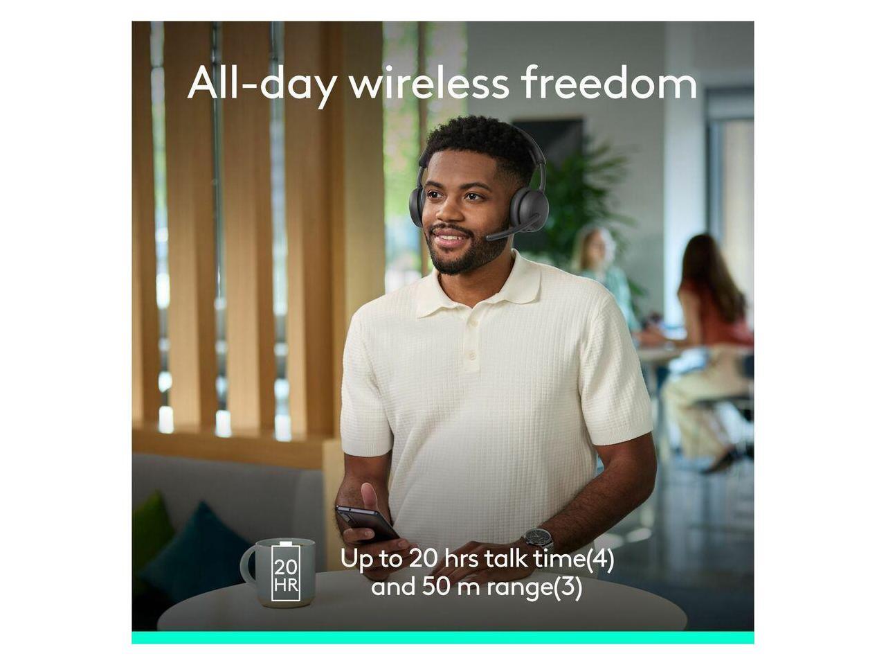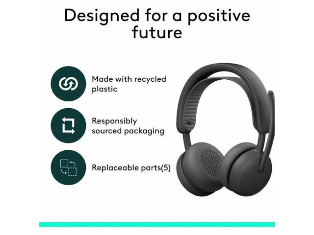 Logitech Zone Wireless 2 ES for Business - Noise-Canceling Wireless Headset with Adaptive Hybrid ANC (Graphite, UC version, with receiver)