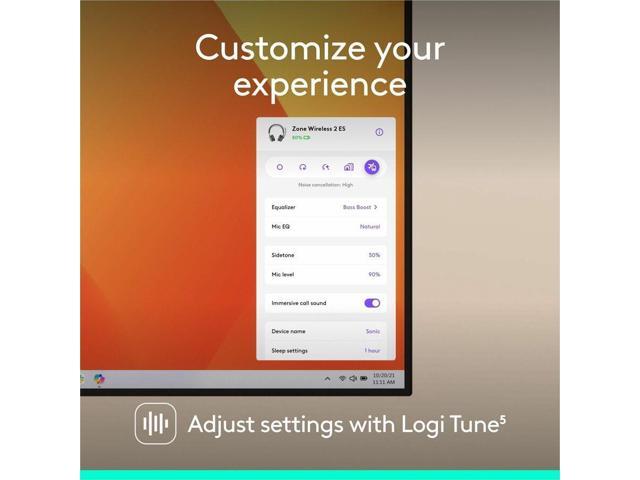 Logitech Zone Wireless 2 ES - Noise-Canceling Wireless Headset with Adaptive Hybrid ANC (Graphite, UC)