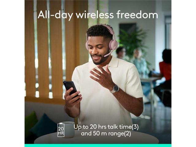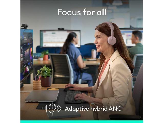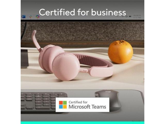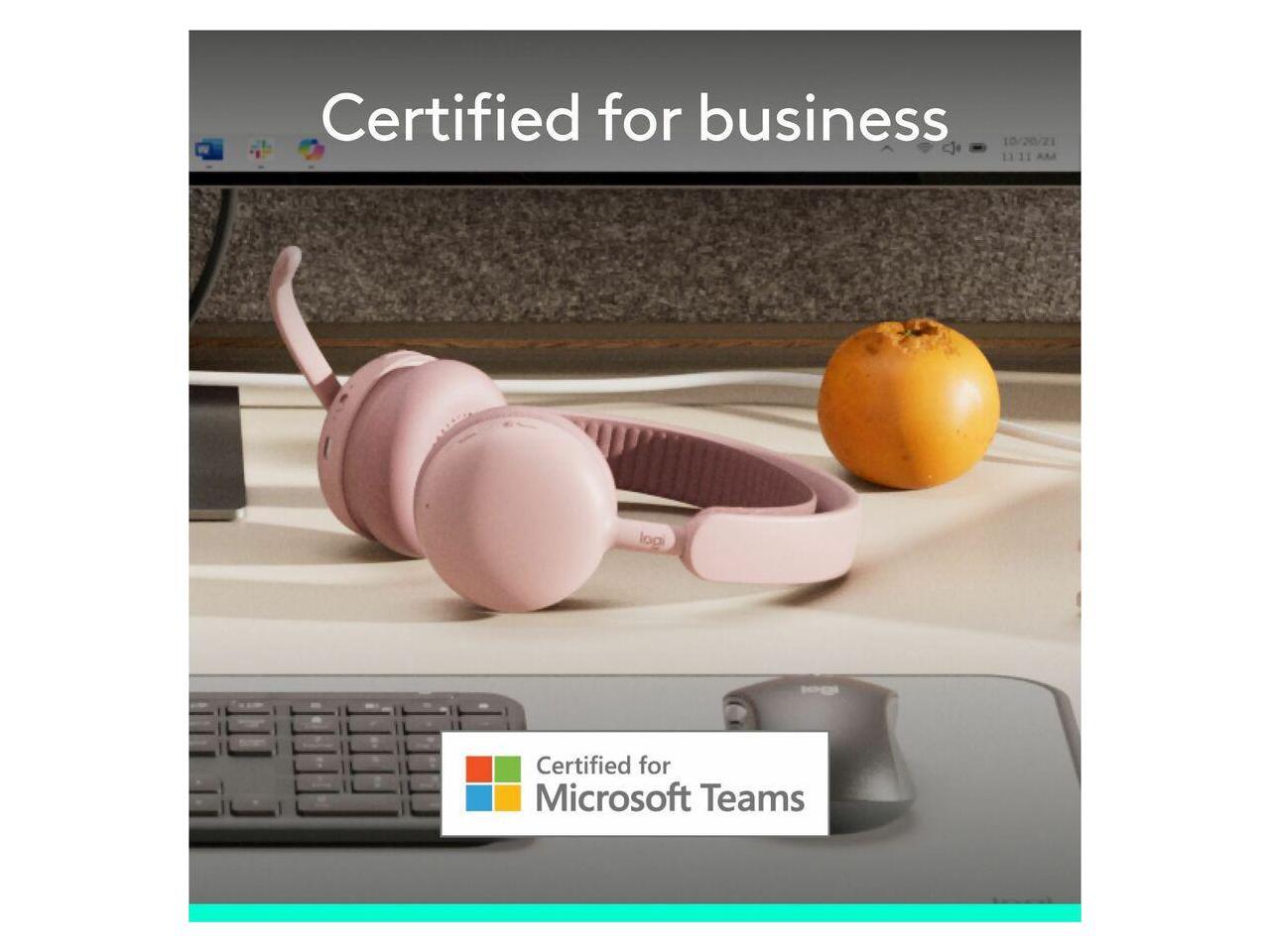 Logitech Zone Wireless 2 ES for Business - Noise-Canceling Wireless Headset with Adaptive Hybrid ANC (Teams version, with receiver) - Rose