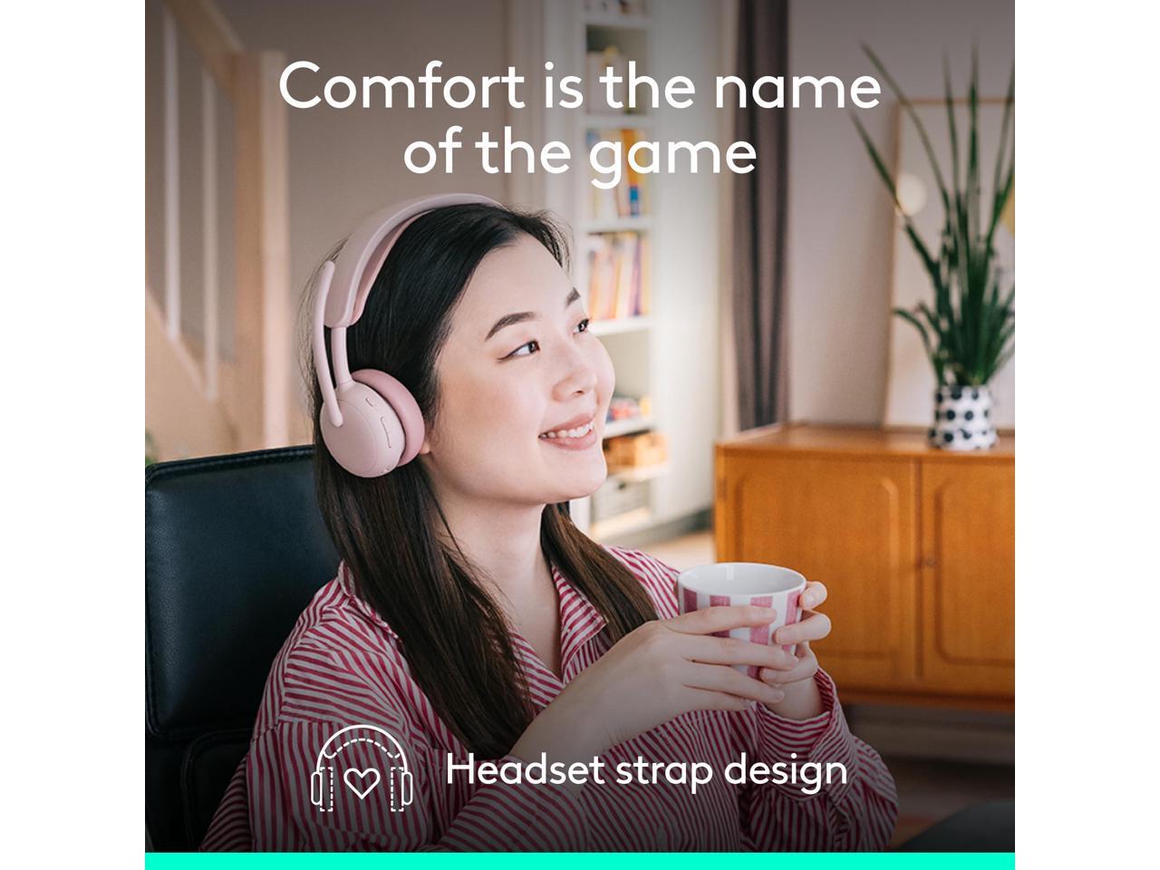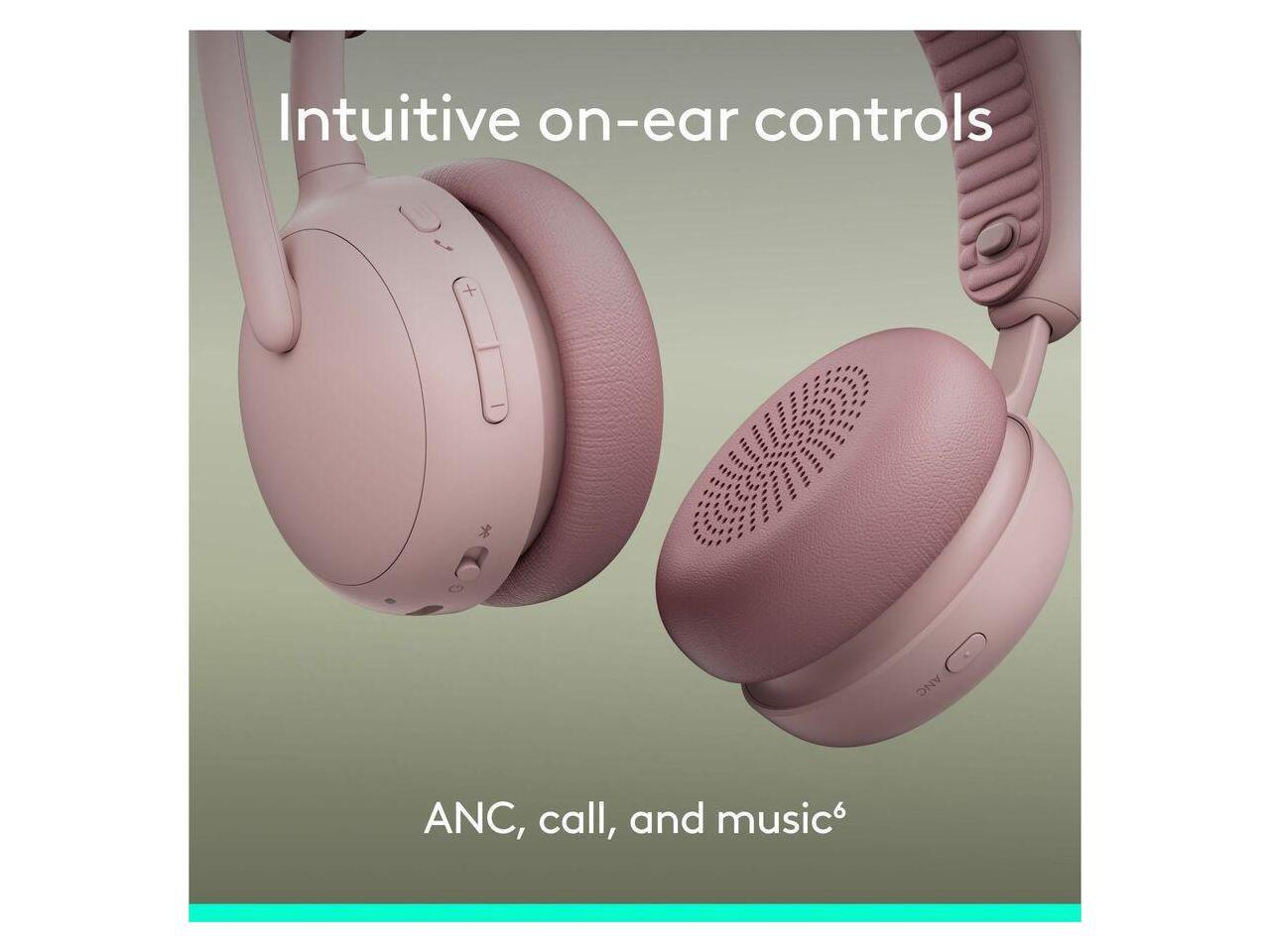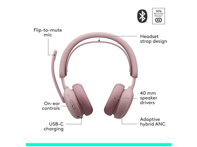Logitech Zone Wireless 2 ES - Noise-Canceling Wireless Headset with Adaptive Hybrid ANC (Rose, UC)