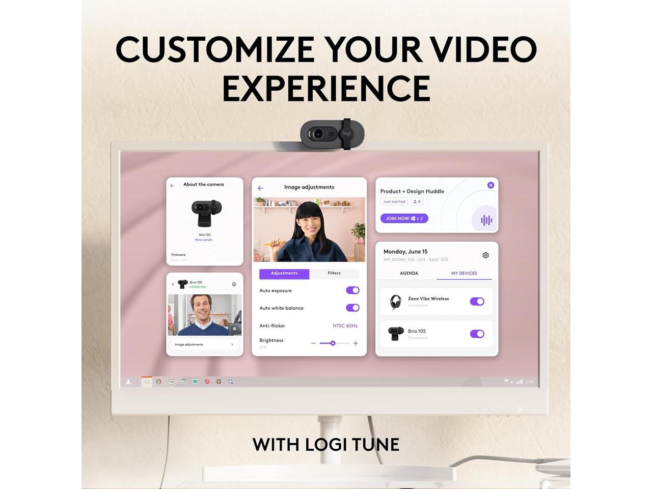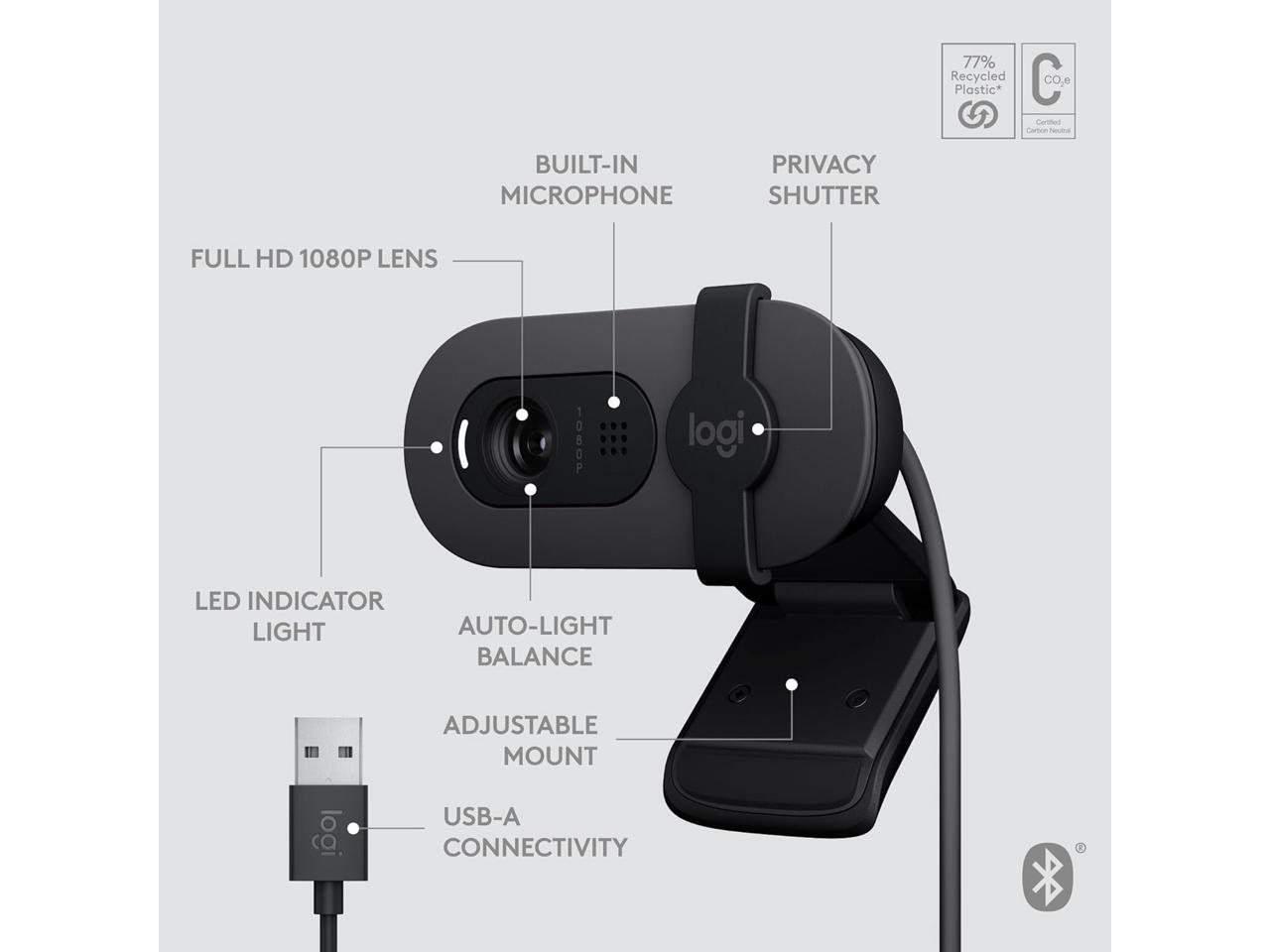 - Plug-and-Play: Just plug Logitech Brio 105 into an available USB-A port on a computer or dock and start a video call with its built-in mic