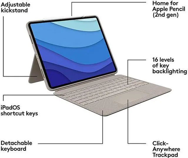 Logitech - Combo Touch Keyboard Folio for Apple iPad Pro 12.9" (5th Gen) with Detachable Backlit Keyboard - Sand