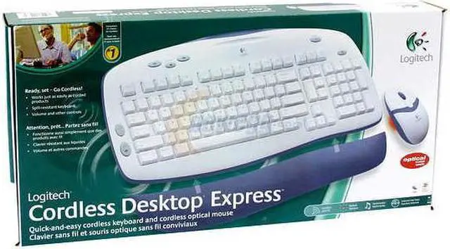 Throw away that corded keyboard and mouse and start enjoying the convenience, simplicity, and freedom of cordless. The Logitech Cordless Desktop Express eliminates the hassle and clutter of cables all over your desk. Plus it offers a huge combination of extra features that will make your life a little easier. You can adjust audio volume, launch your web home page or your calculator with conveniently placed buttons on your spill-resistant keyboard. And the cordless optical mouse lets you work smoothly and freely on almost any surface.