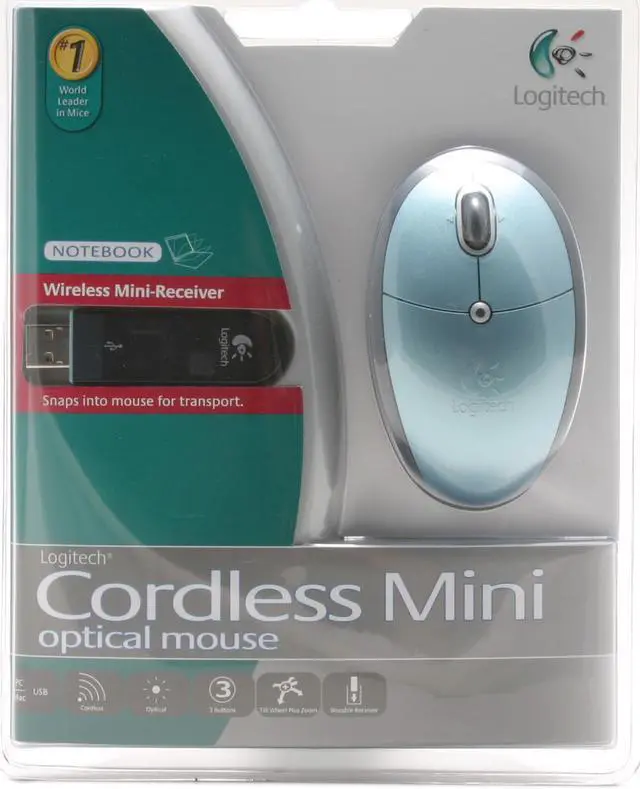 Say goodbye to your touchpad! The Logitech Cordless Mini Optical Mouse is small enough to fit in your bag and is designed for your comfort - at home or on the road. The plug-and-play mini-receiver snaps right into the mouse for easy transport, and shuts your mouse off to save power. A battery indicator light tells you when it's time for a change. And the tilt wheel provides side-to-side scrolling, plus zoom for easy viewing of large photos or web pages.