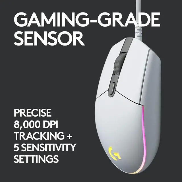 Get accurate cursor tracking and responsive performance thanks to a gaming-optimized sensor. With adjustable sensitivity from 200 to 8000 dpi, pick the right level that fits your play preference. Use Logitech G HUB software to program up to 5 presets.