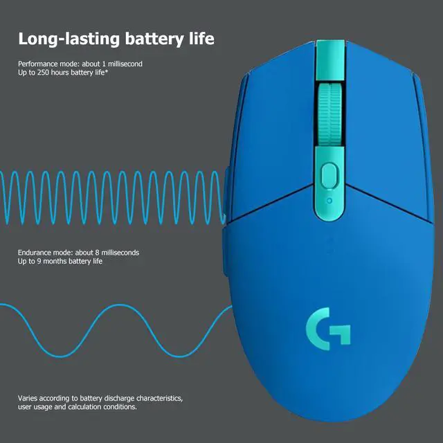 HERO sensor and LIGHTSPEED wireless deliver extreme efficiency to let you game for months. It delivers up to 250 hours run-to-die on just one AA battery. It can be adjusted to last up to 9 months of typical use in Endurance mode, which can be selected via Logitech G HUB. Tested on Logitech G240 Gaming Mouse Pad Logitech G HUB, as well as the indicator light on G304, will notify you when 15% of battery remains.