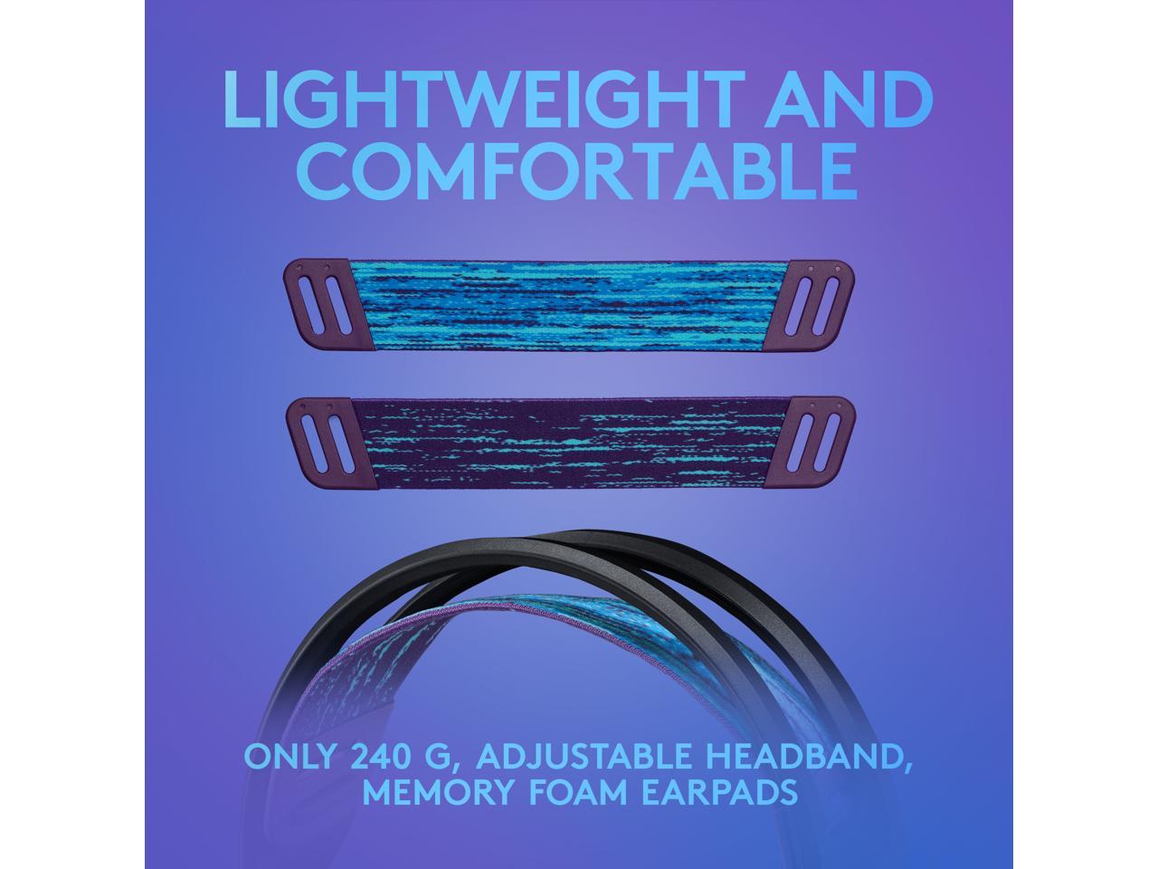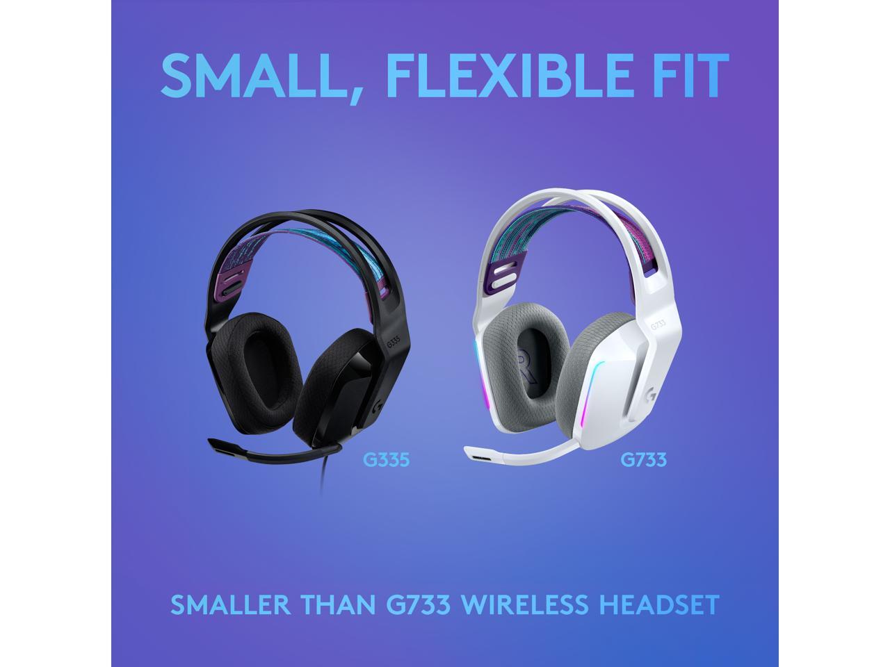 - Lightweight Design: Weighing in at only 8.5 oz (240 g), G335 is smaller and lighter than the G733, features a suspension headband to help distribute weight and is adjustable for a customized fit.