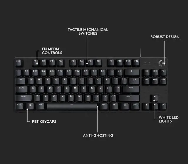 The G413 TKL SE features a black-brushed aluminum backbone for minimal flex and optimal durability.