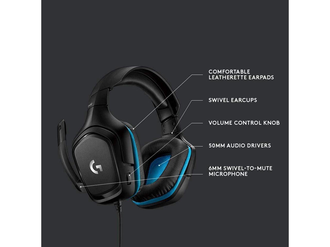Logitech G432 7.1 Surround Sound Gaming Headset - Stereo - Mini-phone, USB - Wired - 5 Kilo Ohm - 20 Hz - 20 kHz - Over-the-head - Binaural - Circumaural - 6.56 ft Cable - Cardioid, ...