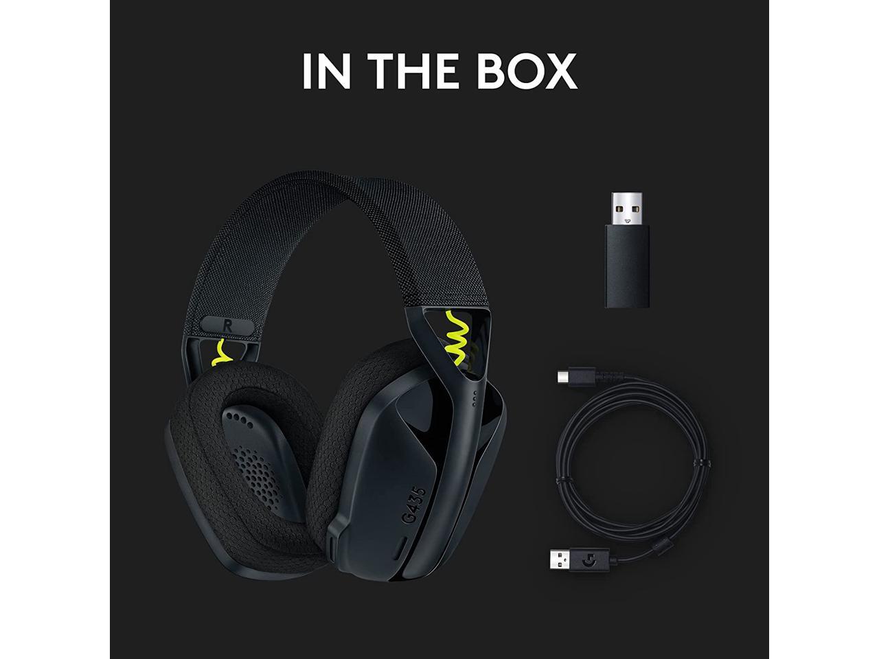 Logitech G435 LIGHTSPEED and Bluetooth Wireless Gaming Headset - Lightweight over-ear headphones, built-in mics, 18h battery, compatible with Dolby Atmos, PC, PS4, PS5, Nintendo Switch, Mobile - Black