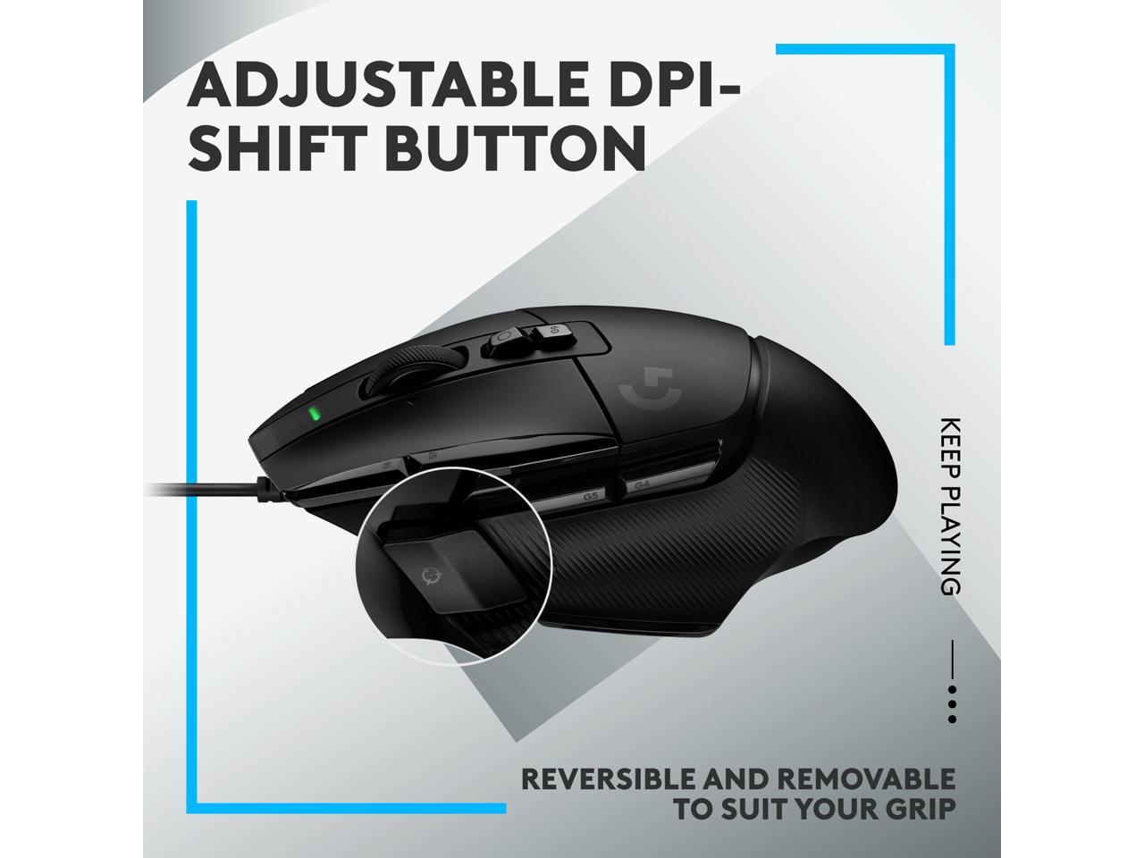 - Redesigned DPI-shift button: This wired optical gaming mouse features a reversible and removable DPI-shift button for precise customization depending on your grip and preference