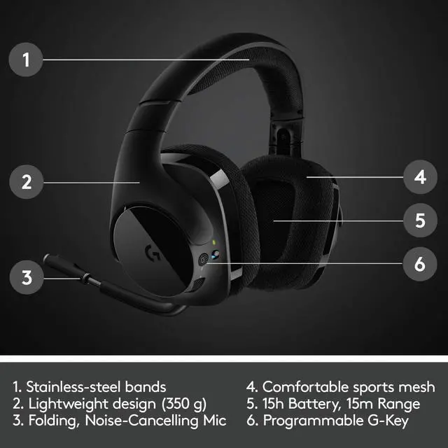 G533 has advanced lossless digital audio transmission, delivering wireless convenience and incredible high fidelity sound with up to 15 meters range. G533 is designed to maintain a strong connection even in noisy EMI environments such as when there are multiple competing wireless signals nearby.