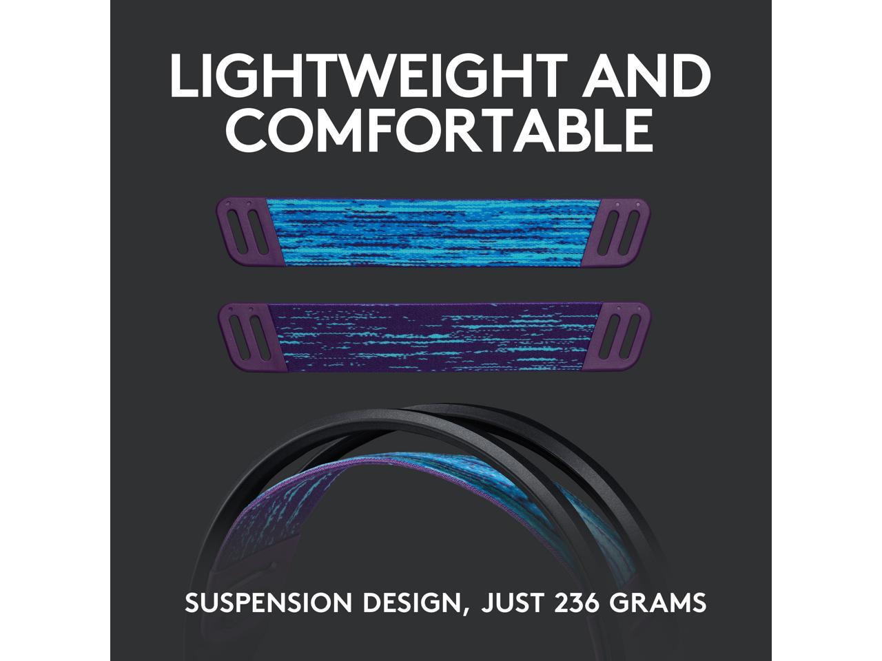 - Lightweight and Comfortable: At only 236 grams, G535 is smaller and lighter than the G733; reversible suspension headband helps distribute weight and is adjustable for a customized fit