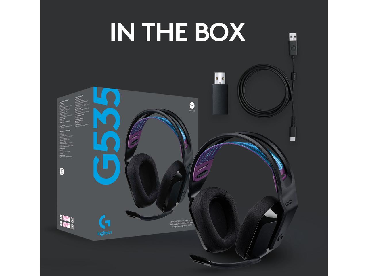 Logitech G535 LIGHTSPEED Wireless Gaming Headset - Lightweight on-ear headphones, flip to mute mic, stereo, compatible with PC, PS4, PS5, USB rechargeable - Black