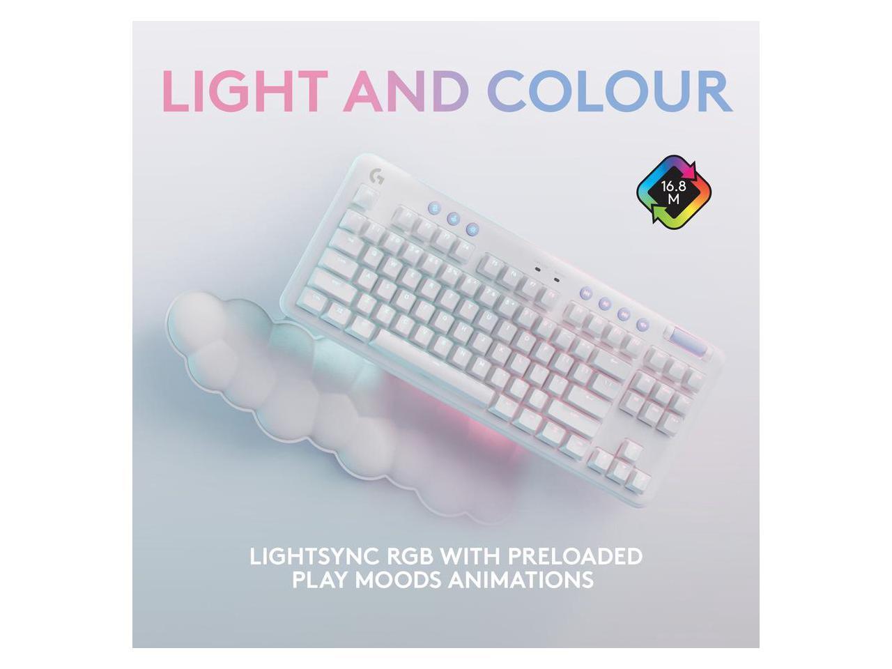 • Cloud-soft Comfort: Float away with G715’s dreamy white design and comfy, cloud-shaped palm rest; compact mechanical TKL keyboard layout and adjustable height give that good game feeling, all-day long