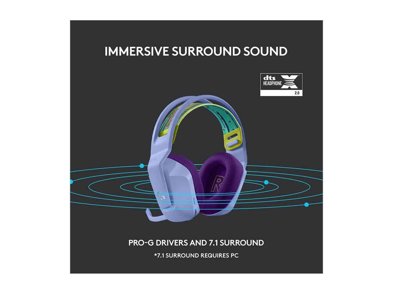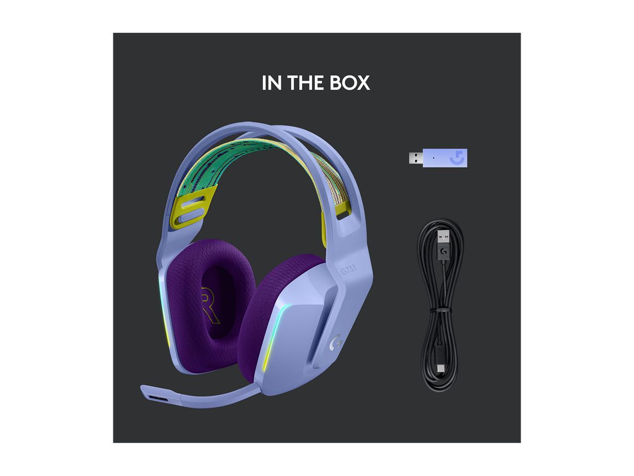 Logitech G733 LIGHTSPEED Wireless Gaming Headset with suspension headband, LIGHTSYNC RGB, Blue VO!CE mic technology and PRO-G audio drivers - Lilac