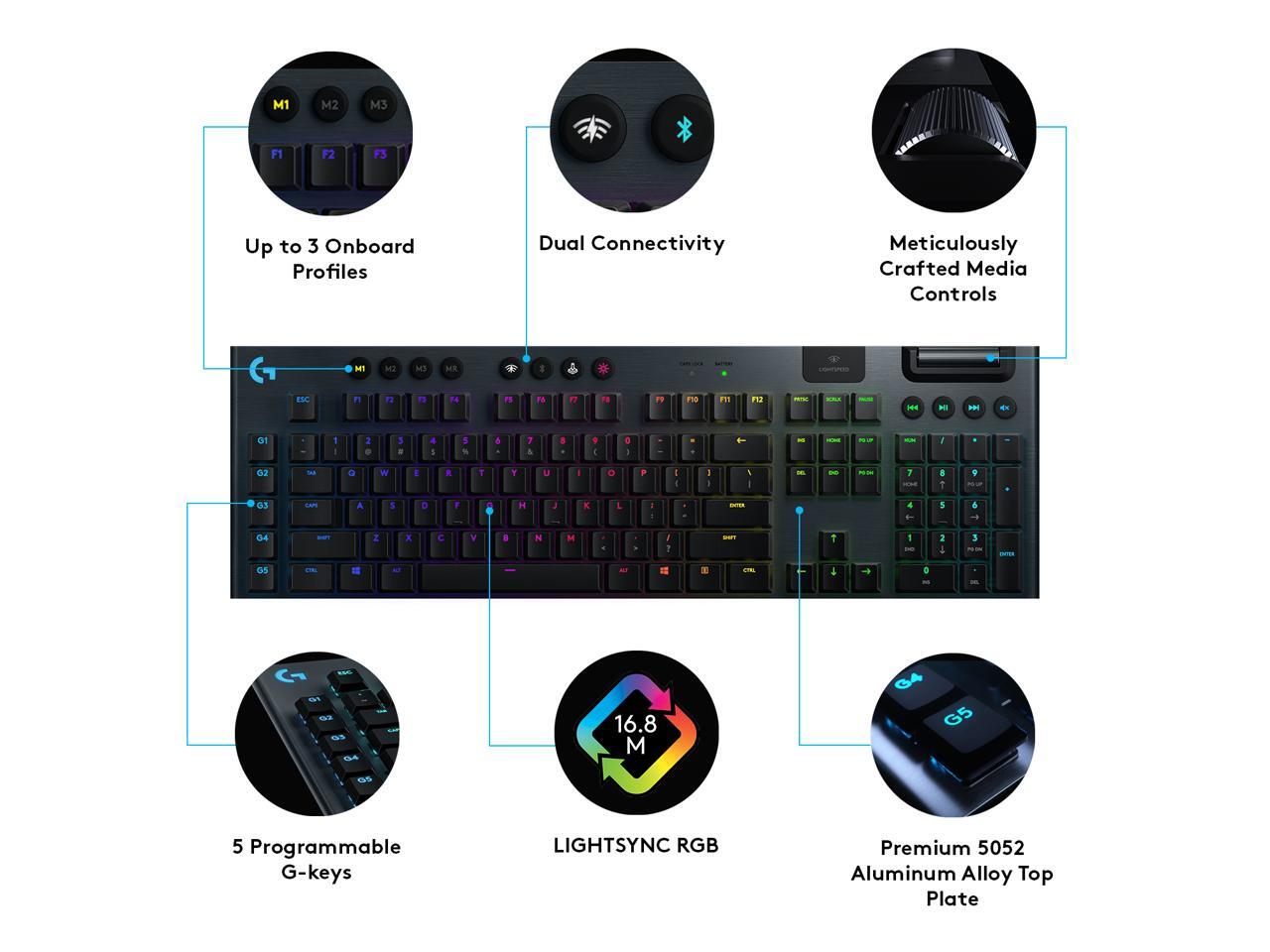 Logitech G915 LIGHTSPEED RGB Mechanical Gaming Keyboard, Low Profile GL Linear Key Switch, LIGHTSYNC RGB, Advanced LIGHTSPEED Wireless and Bluetooth Support - Linear