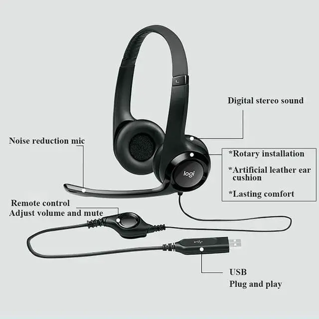 USB COMPUTER HEADSET The perfect business headset for voice calls, Skype, webinars and more. The 7.64 ft (233cm) cable is just the right length to give you the freedom to stand up and stretch during long conversations. DIGITAL STEREO SOUND Laser-tuned drivers provide enhanced digital audio for music, games and calls. This plug-and-play headset can be used with any PC or Mac computer with a USB-A port or adapter without the need to install software. NOISE CANCELING MIC Minimizes unwanted background noise for clear conversations. Rigid, left-sided mic can be positioned for better voice capture.