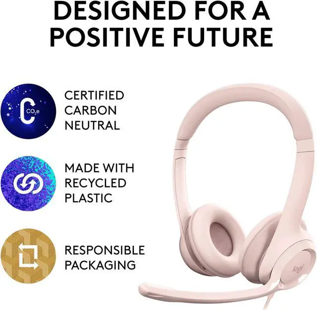 Sustainable Design: Plastic parts in H390 Logitech Headset includes post-consumer recycled plastic (23%*); uses FSC-certified paper for responsible packaging