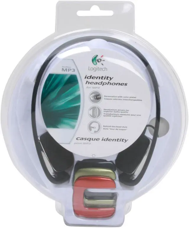 Take customization to a new level with Logitech Identity headphones for MP3. Changeable color plates allow you to mix colors and styles to match your music and mood. The progressive behind-the-head design keeps Identity comfortably in place, and the oversized, matched neodymium drivers that provide powerful audio in a small and lightweight package.
