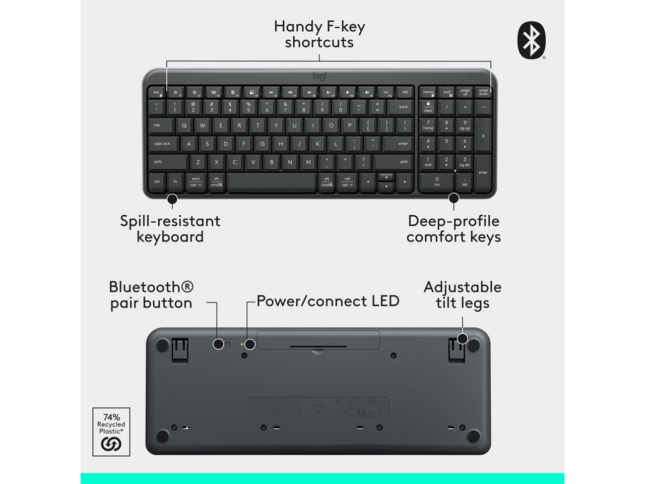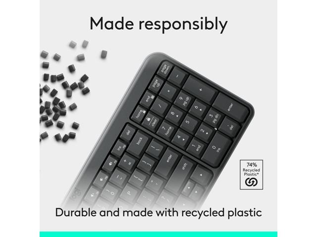 Logitech MK250 Bluetooth Keyboard with Numpad Easy Connectivity Compact Wireless Keyboard made with Recycled Plastic Spill-Resistant comfortable Keys Graphite 920013442