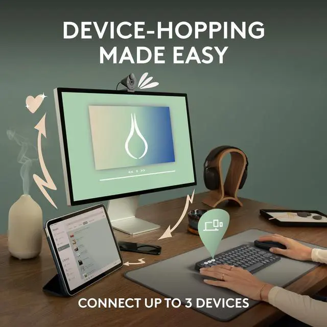 Device-jumping just got easier. Switch between up to 3 wireless devices across OS (Windows, macOS, iPadOS, iOS, ChromeOS, Android) with a press of the Easy-Switch buttons.
