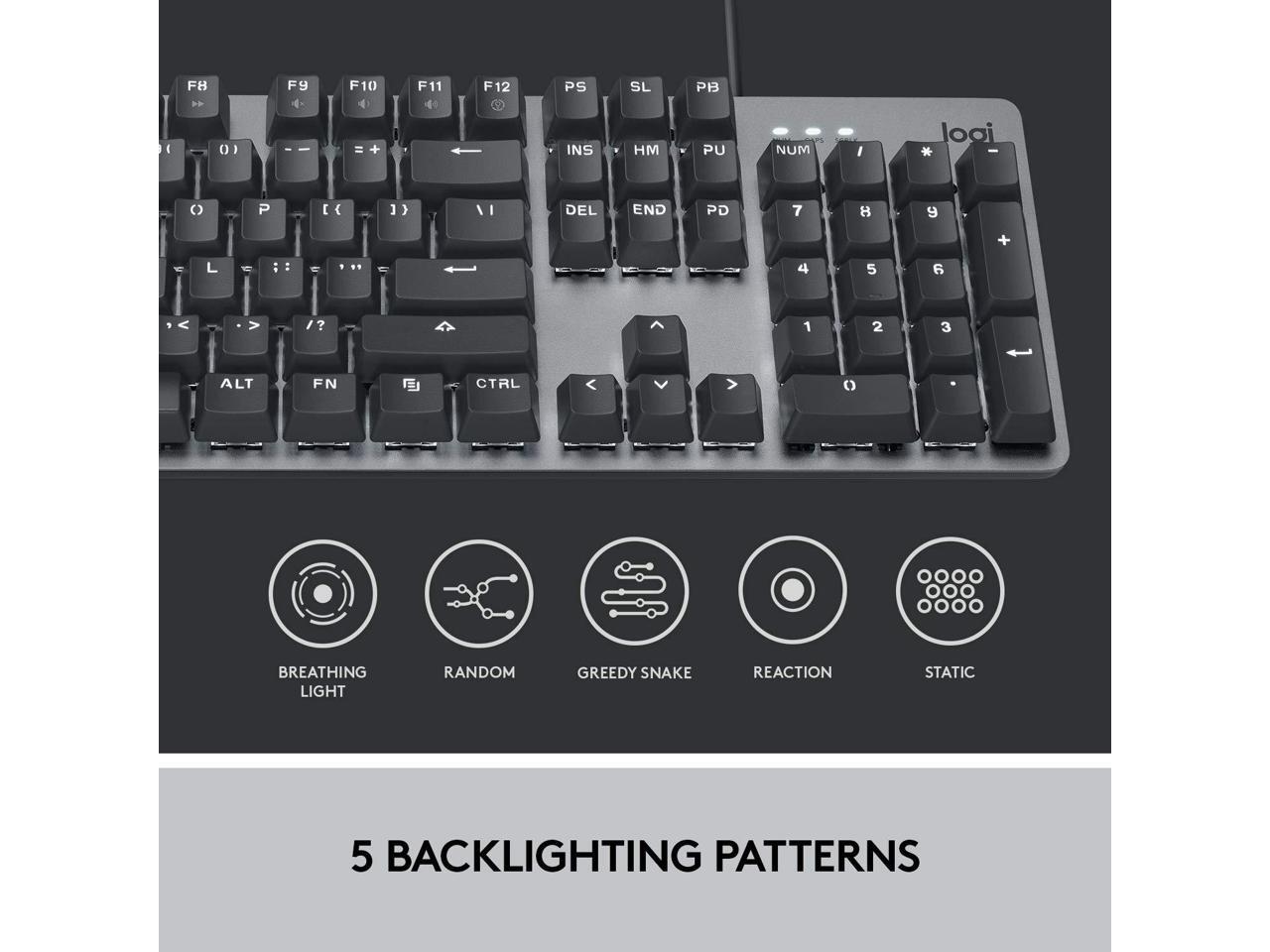 Logitech K845 Mechanical Illuminated Keyboard, Strong Adjustable Tilt Legs, Compact Size, Aluminum Top Case, 104 Keys, USB Corded, Windows (Logitech Blue Switches)