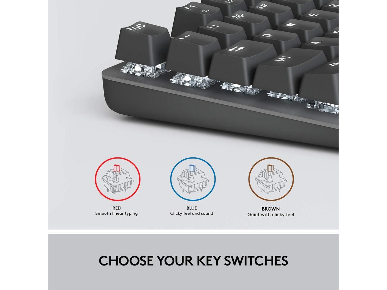 - Choose between Red, Blue, or Brown switches for the right level of sound and tactile key feedback.