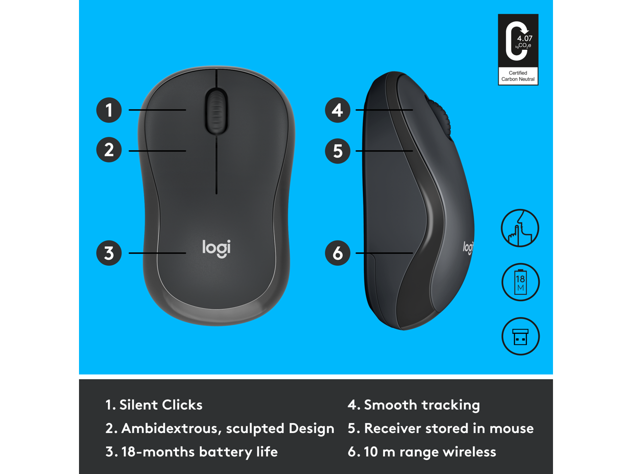 - M220 features Logitech Advanced Optical Tracking, designed for smooth and precise moves on almost any surface.