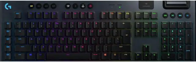 The G915 can last up to 30 hours of use with 100% backlighting. It recharges fully in about three hours, and a battery indicator light will notify you when it's at 15% charge.