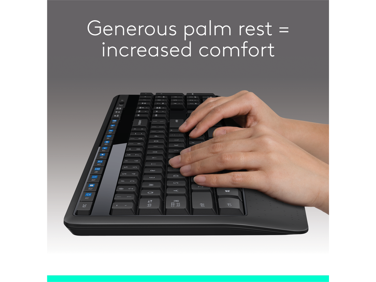Logitech MK345 Wireless Combo Full-Sized Keyboard with Palm Rest and Comfortable Right-Handed Mouse, 2.4 GHz Wireless USB Receiver, Compatible with PC, Laptop
