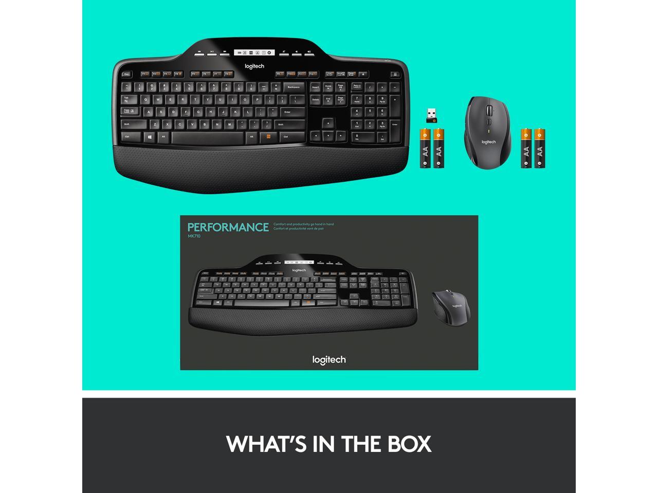 Logitech MK710 Wireless Keyboard and Mouse Combo — Includes Keyboard and Mouse, Stylish Design, Built-In LCD Status Dashboard, Long Battery Life