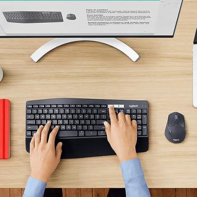 The powerful MK850 wireless keyboard and mouse combo delivers a new level of productivity and comfort. It can work across three devices including computer, tablet, and phone. When it is three computers, you can navigate and copy-paste between them seamlessly. Cushioned palm rest, curved keyframe and contoured mouse allow for comfortable productivity.