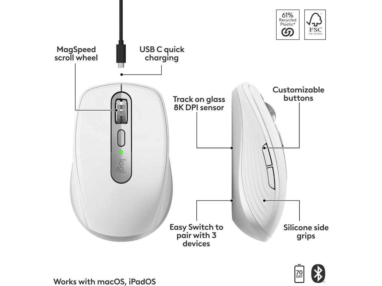 - Mastered For Mac: With matching Apple finishes, Logi Options+ functions for macOS, USB-C charging, MX Anywhere 3S for Mac makes for a perfect fit with your Apple setup