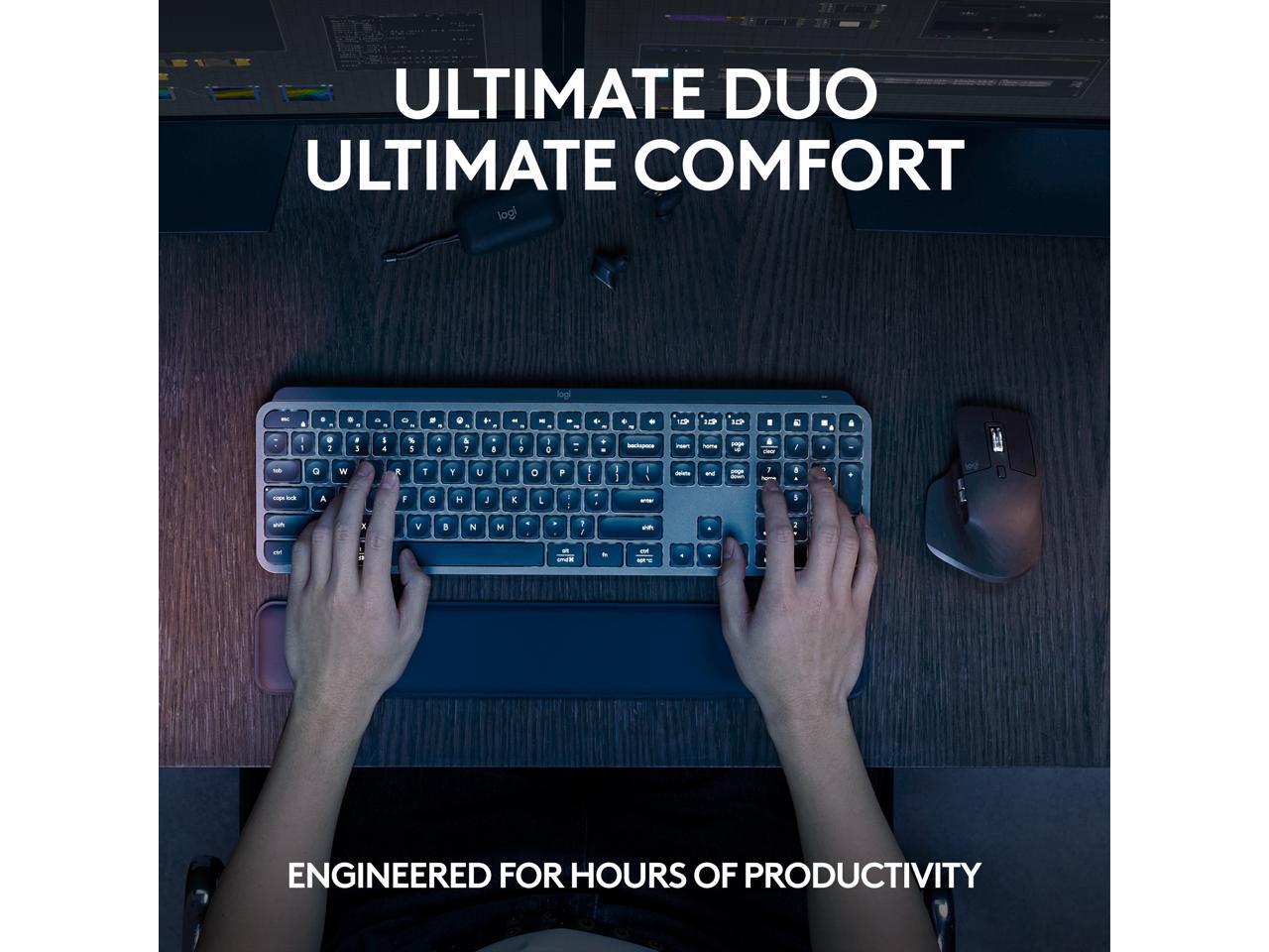 - Smarter Illumination: Backlit keyboard keys light up as your hands approach and adapt to the environment; now with more lighting customizations on Logi Options+