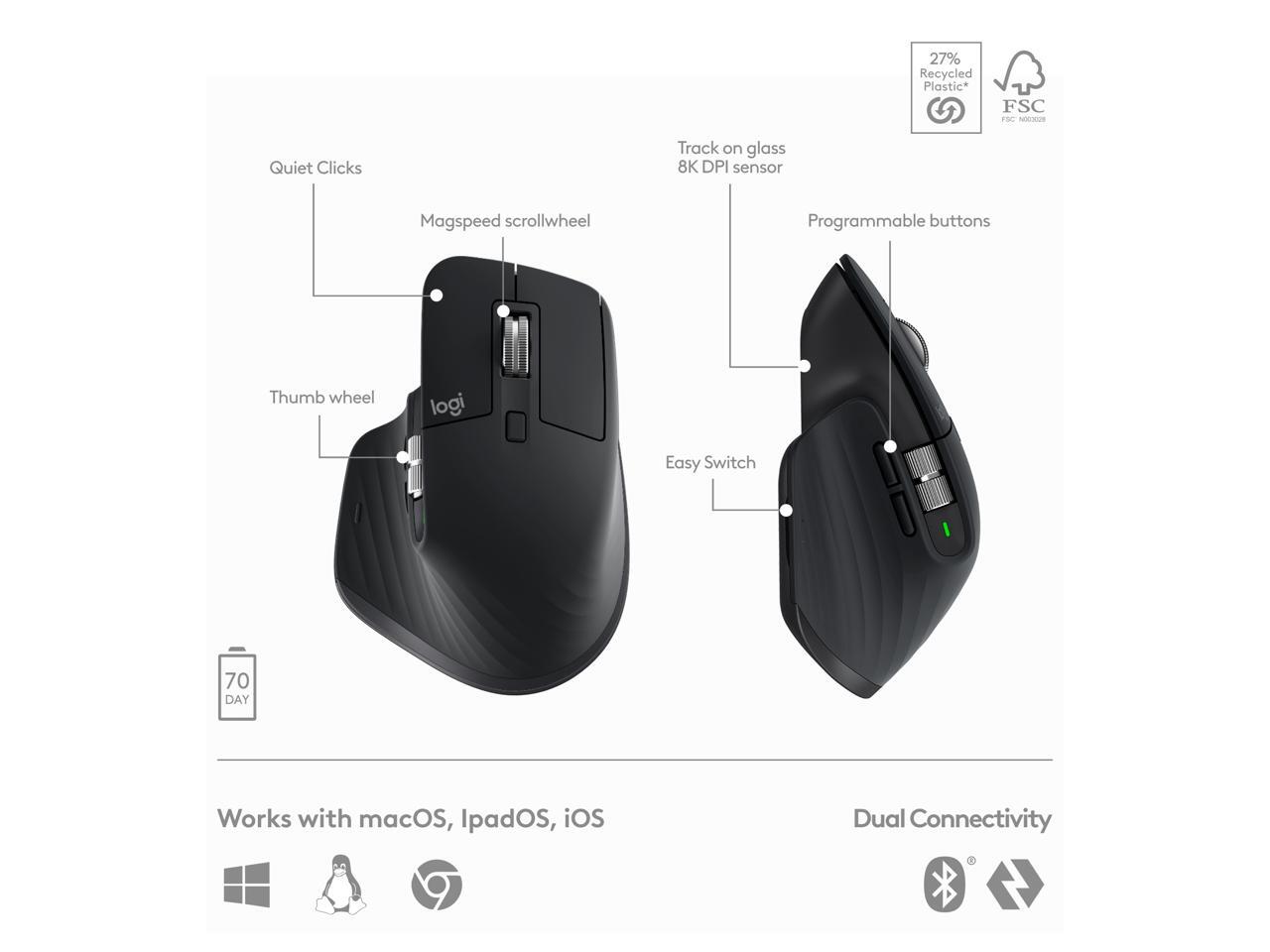 - Scroll 1000 Lines Per Second: With MagSpeed, Logitech’s fastest and most precise scroll wheel, and an 8K DPI sensor, this Logitech Mouse tracks anywhere – even on glass