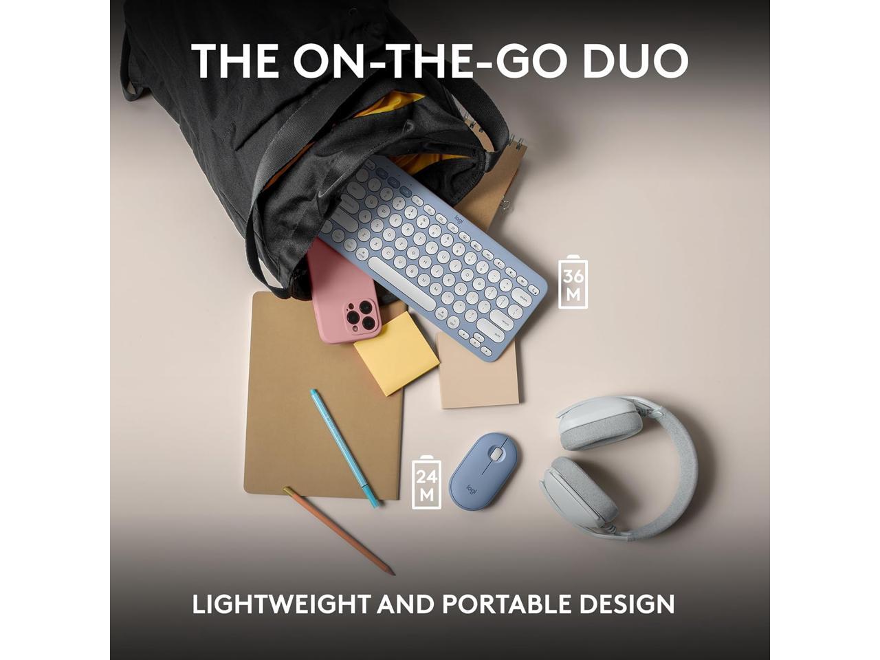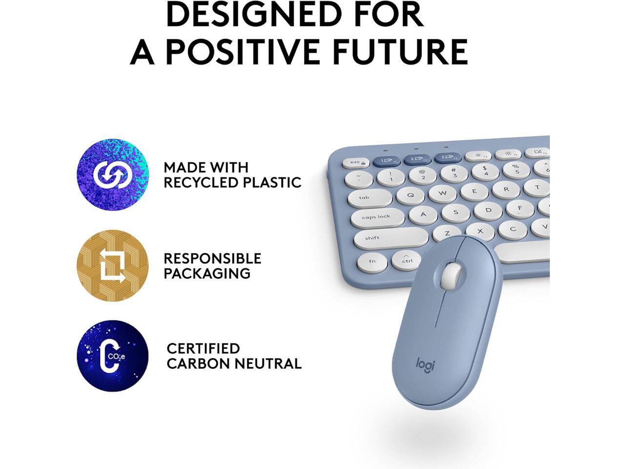 Logitech Pebble 2 Combo for Mac, Wireless Keyboard and Mouse, Slim, Quiet and Portable, Customizable, Bluetooth Mouse and Keyboard, Easy-Switch, for macOS, iPadOS - Tonal Blue