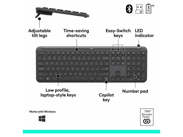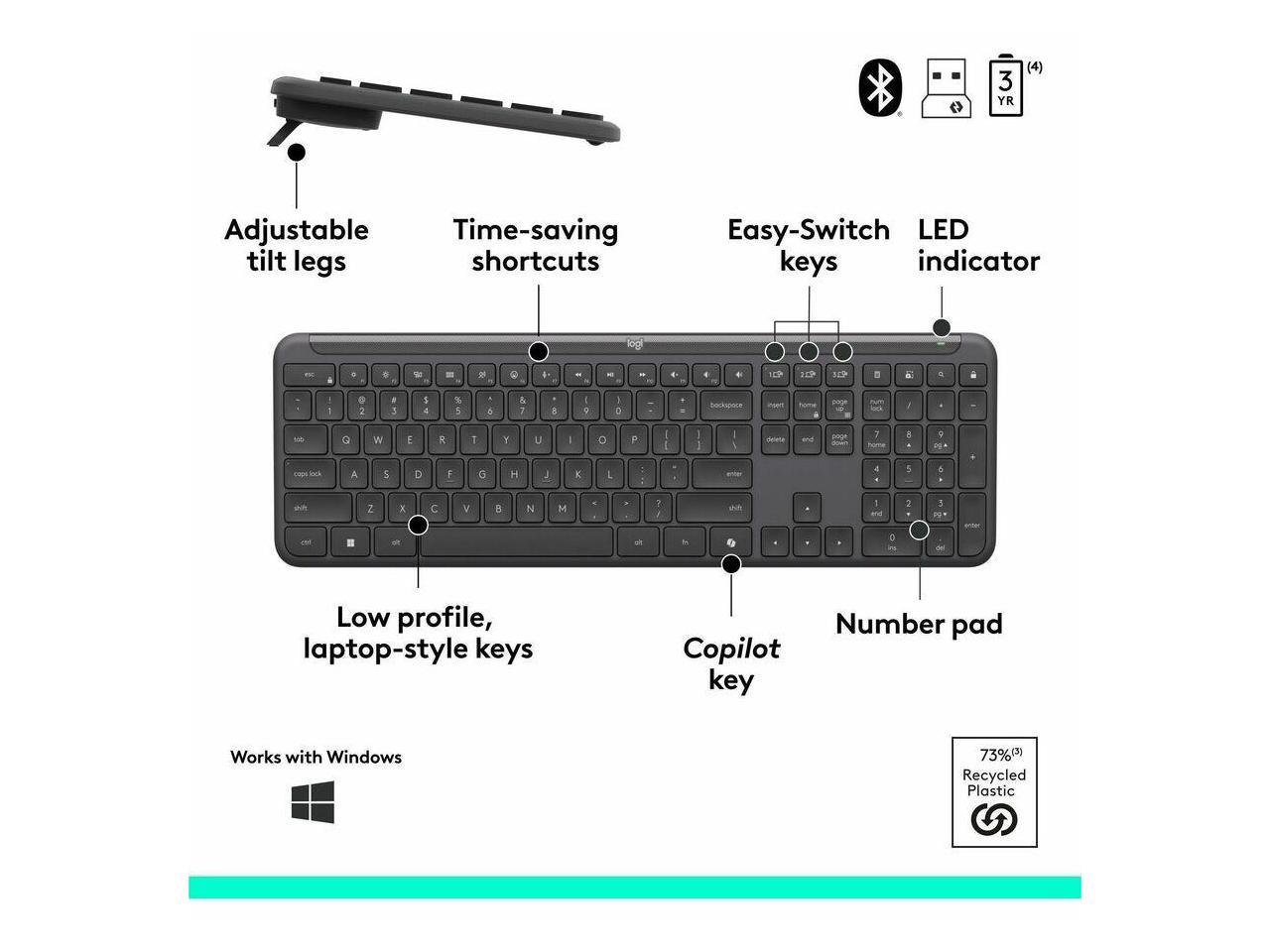 Logitech Signature Slim MK955 Combo for Business, Copilot Edition, Wireless Keyboard and Mouse, Graphite 920-013271