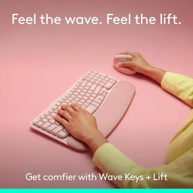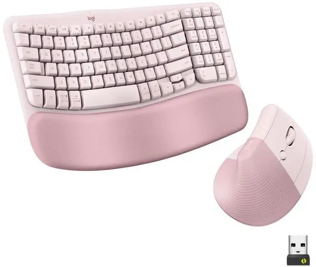 Logitech Wave Keys & Lift Vertical Mouse Ergonomic Wireless Keyboard and Mouse Combo with Cushioned Palm Rest Rose 920013612