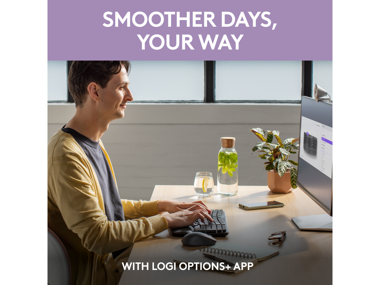 - Smoother days, your Way: Personalize your Wave Keys experience using the Logi Options+ App, where you can choose shortcuts that save time and keep your work flowing