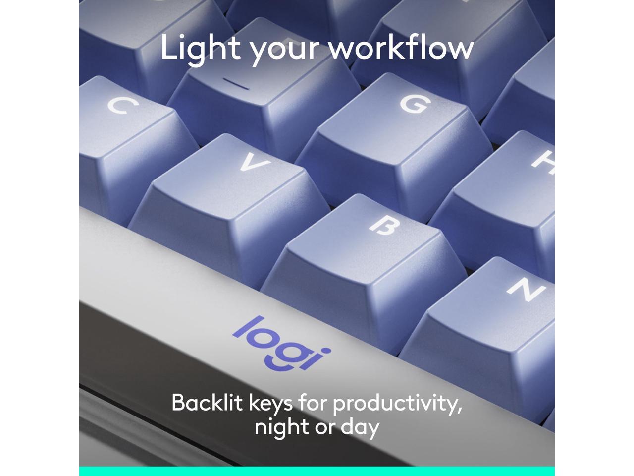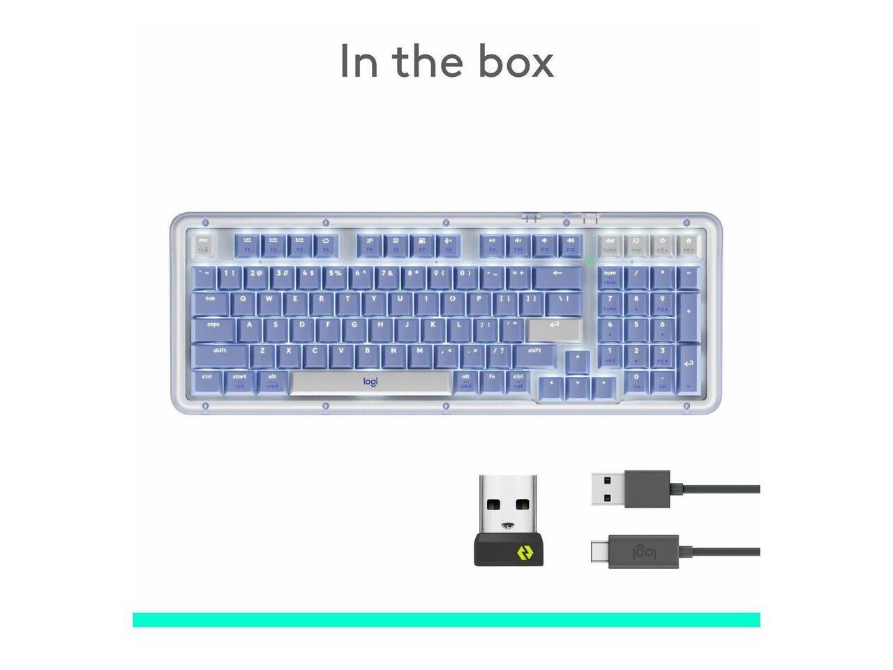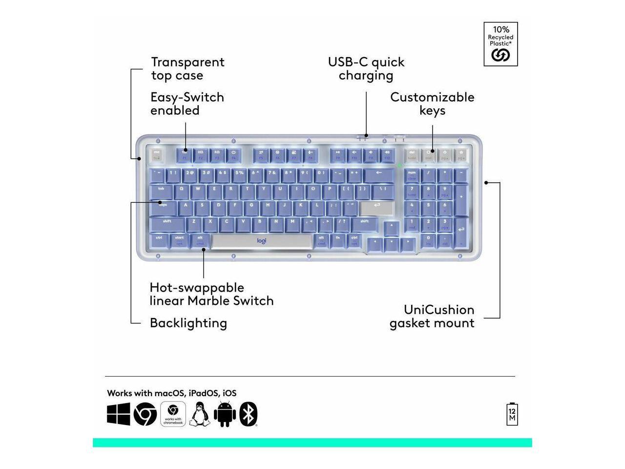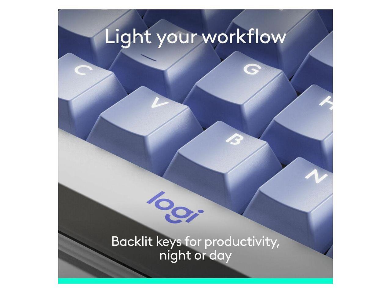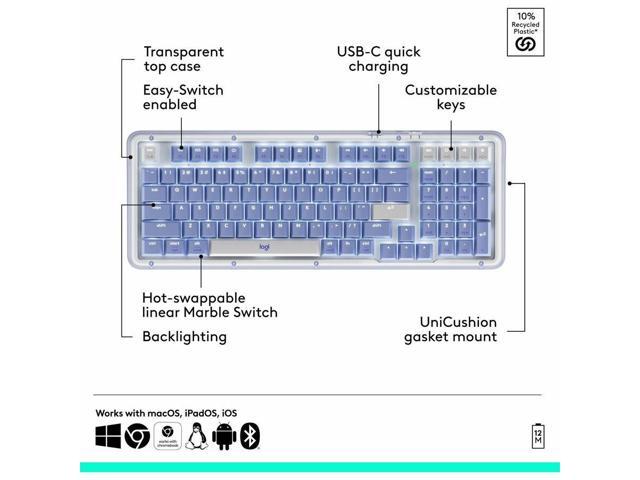 Logitech Alto Keys K98M Wireless Mechanical Keyboard, Customizable Keyboard with Vibration Absorbing Gasket, Backlit Keys, Lilac - Wireless Connectivity - Bluetooth/RF - Full-size - 2.40 GHz - USB Typ