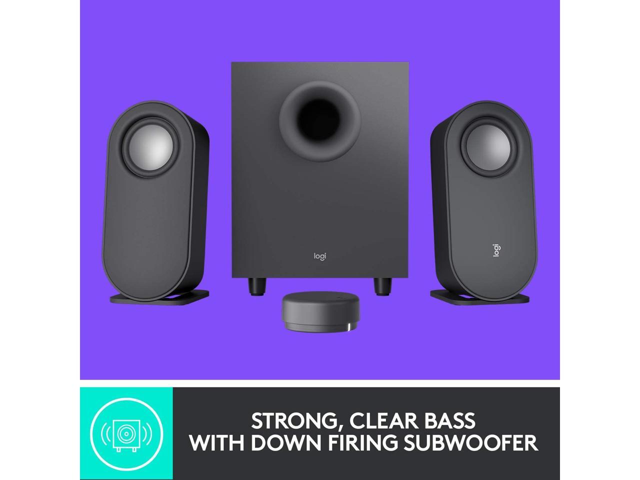 - STRONG BASS WITH CLARITY – 20-watt bass with digital signal processing produces deep yet clear bass and superior sound performance. The ported, down-firing subwoofer adds “boom” to music, movies, and gaming.