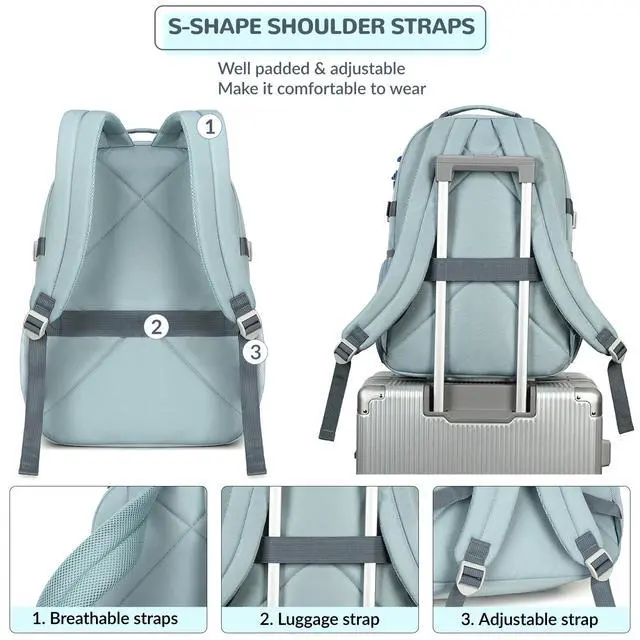 [Comfortable] - The shoulder starp is adjustable, you can adjust the lenth that suits yourselves, and luggage strap allows backpack fit on luggage/suitcase, slide over the luggage upright handle tube for easier carrying.