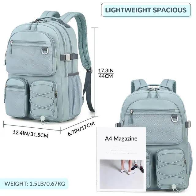 [Durable & Lightweight] - The big backpack is made of water resistant polyester fabric with metal zippers. It is lightweight only 1.56lb, Great for casual daily use, school and travel.