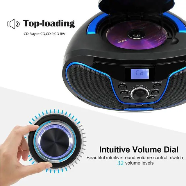 Portable CD Player | Top-Loading CD | Big Knob Button | Portable Handle | Clear LCD Display | Powerful Dual Stereo Speakers | Multi-functional